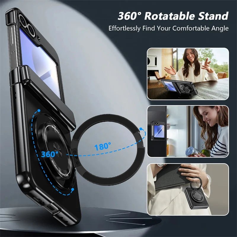 適用於三星Z Flip7/6/5/4/3磁吸360度無線充支架全包保護殼