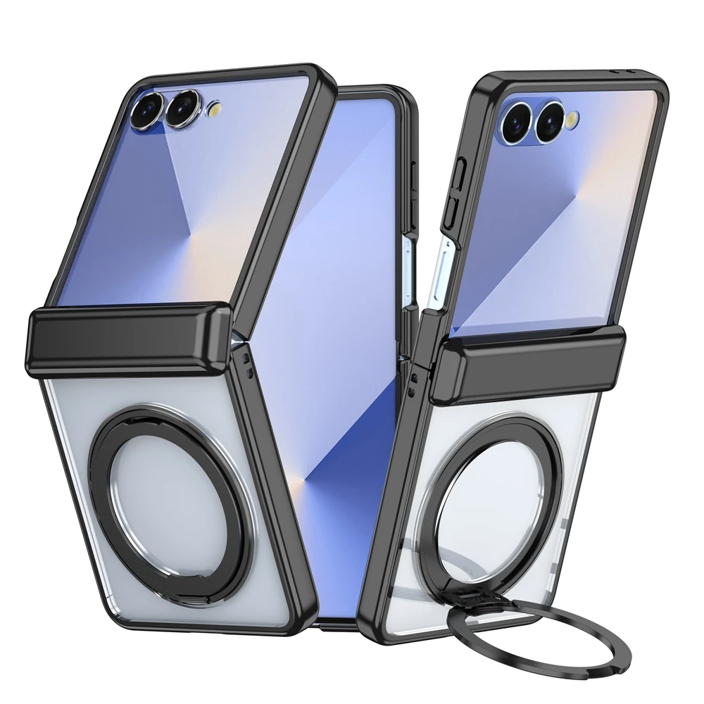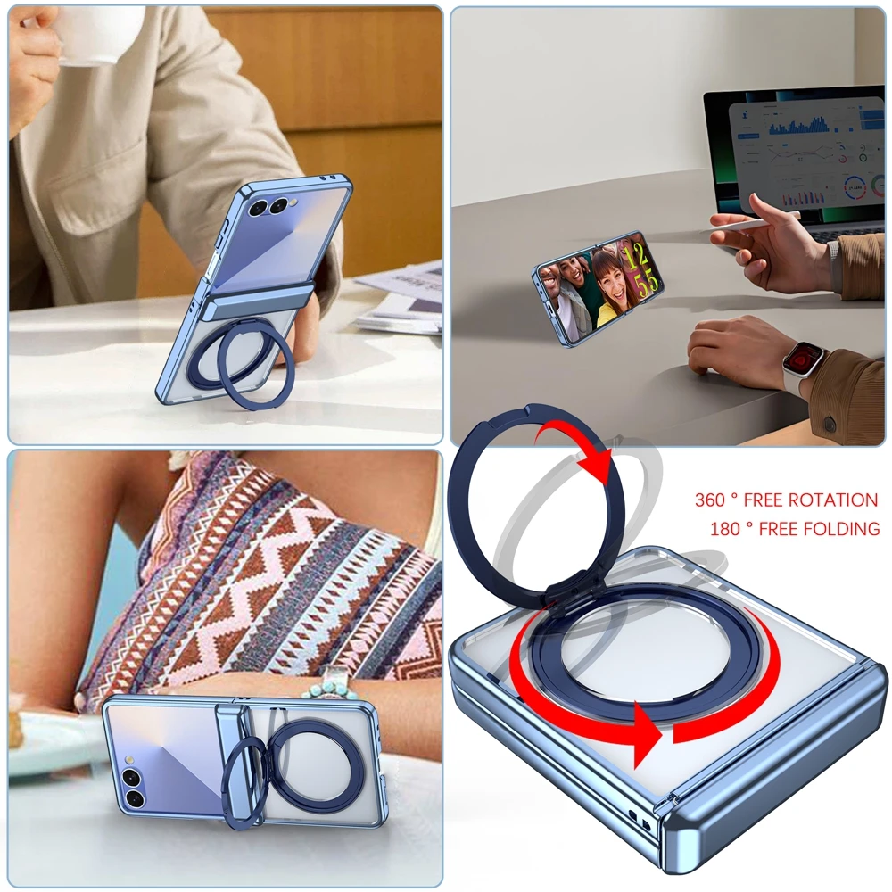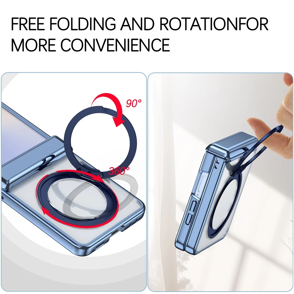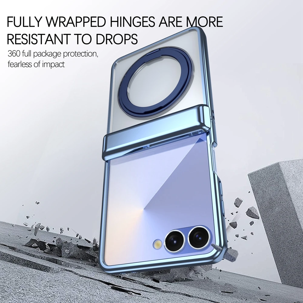 適用於三星Z Flip7/6/5新款電鍍透明磁吸支架保護殼