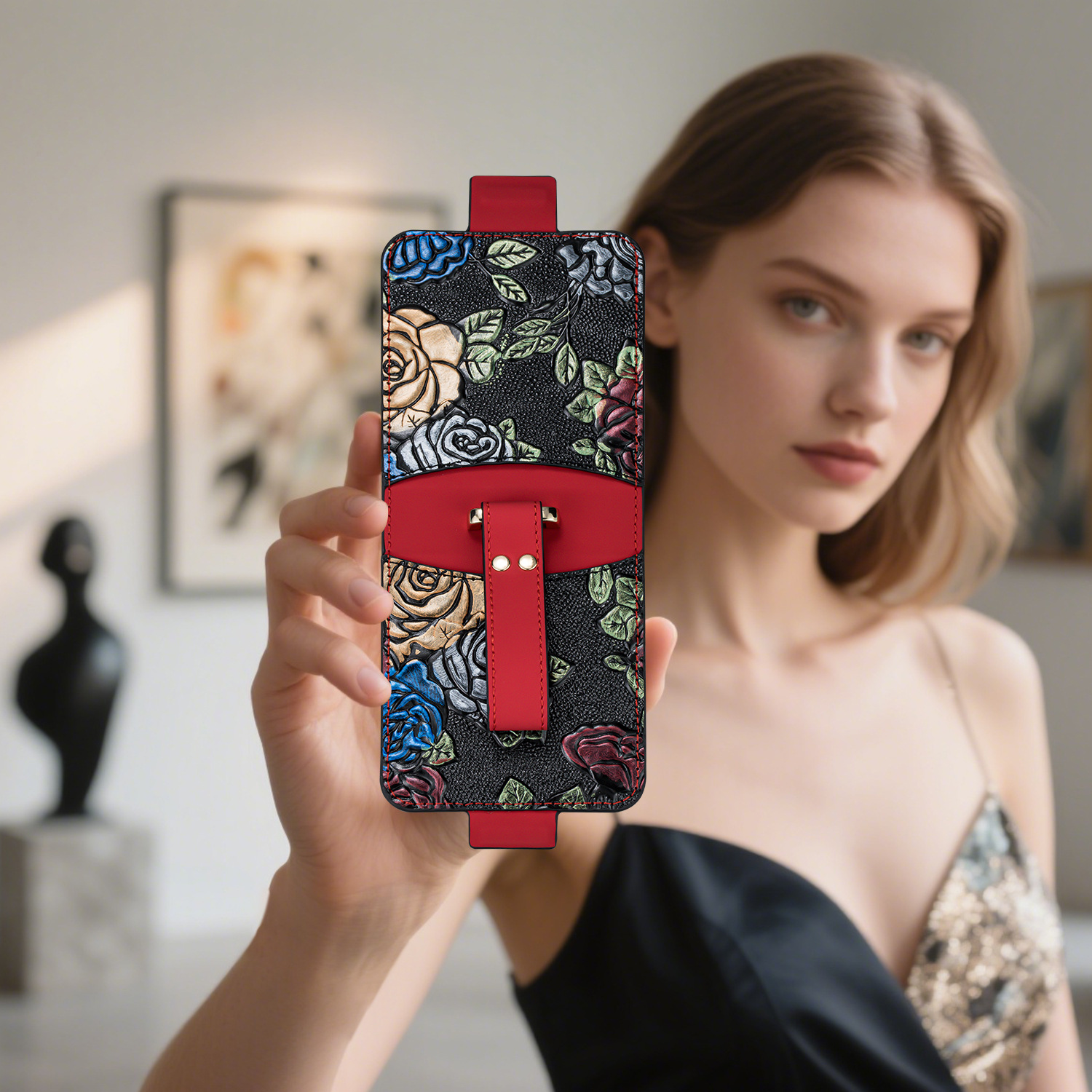 適用於三星Z Flip7/6/5/4/3新款電鍍浮雕彩繪腕帶皮套